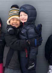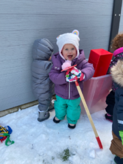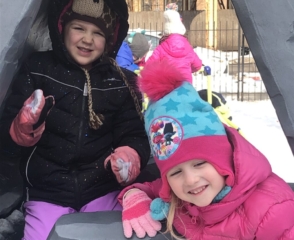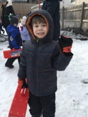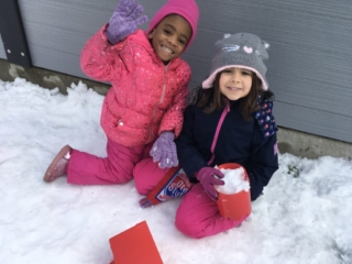 We bundled up in our snow pants, jackets, hats, boots, and mittens and headed out to the park! Then the real fun began. Students made snow angels, rolled the snow into snowballs, constructed snowmen and other buildings, and even got resourceful to go “sledding”! Smiles were abound as we kicked off February with winter merriment!